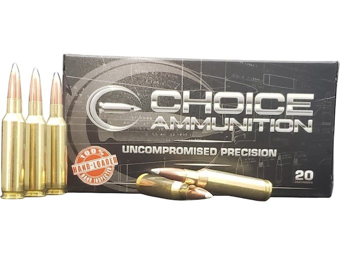 Choice Ammunition rifle calibers range from small varmint to African dangerous game and premium match and target round choices. Precise powder charges, consistent seating depths, and high-quality components equal superior accuracy and reliability with every shot. Why compromise on your rifle ammunition? This ammunition is new production, non-corrosive, in boxer-primed, reloadable brass cases.