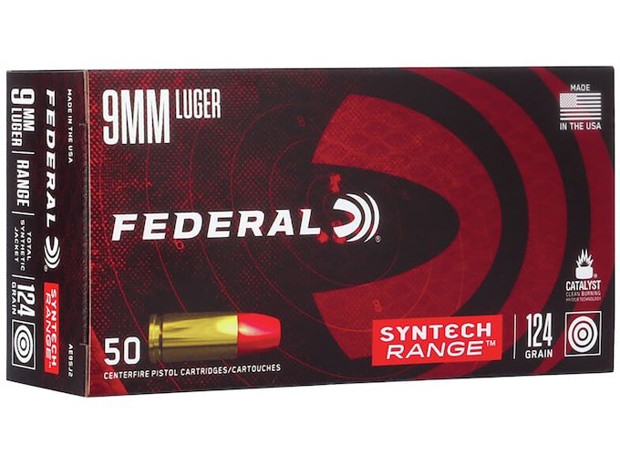 Federal Syntech Range 9mm Luger Ammo 124 Grain Federal TSJ Total Synthetic Jacket (TSJ) Box of 1000