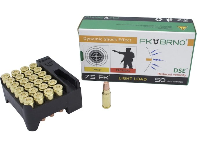 The 7.5 FK caliber ammunition is a proprietary caliber designed and produced by FK BRNO Engineering s.r.o. This caliber was designed specifically to bridge the gap between standard handgun and carbine rifle calibers in terms of power, efficiency, range, and accuracy. While at the same time it’s compact enough to be used in a standard size automatic pistol with a 5-inch or 6-inch barrel, and when used in pistols with FK BRNO’s patented recoil attenuating system, it has recoil comparable with calibers with less than half the kinetic energy.