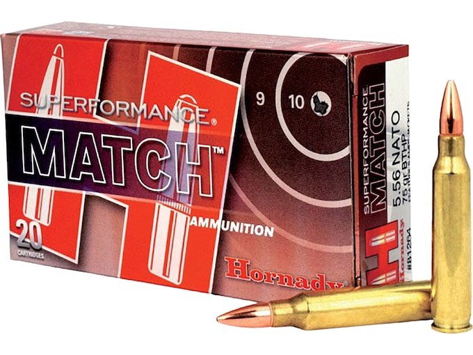 Hornady Superformance Match 5.56x45mm NATO Ammo 75 Grain Jacketed Hollow Point Box of 500
