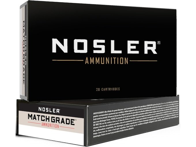 Nosler Match Grade Ammunition is loaded using Nosler Custom Brass and meticulously weighed powder along with trusted Nosler Bullets. The brass goes through intense quality checks and is inspected for correct length, neck-sized, chamfered, trued, and the flash holes are checked for proper alignment. The resulting ammunition delivers extreme accuracy and consistency unlike many other factory loads. This ammunition is new production, non-corrosive, in boxer primed, reloadable brass cases.