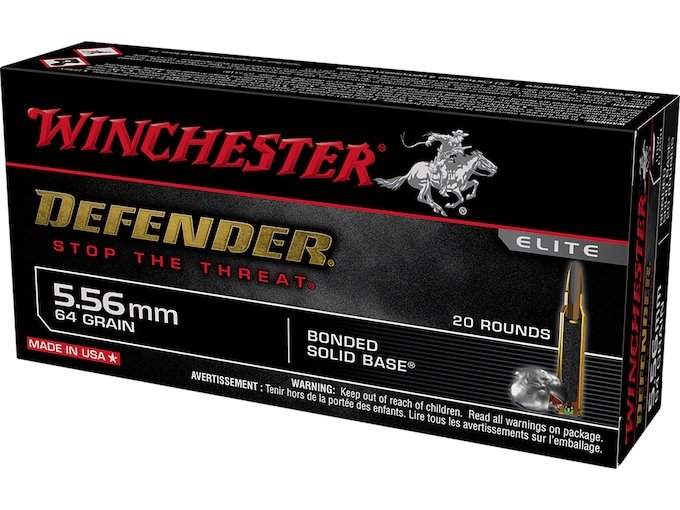Winchester Defender 5.56x45mm NATO Ammo 64 Grain Bonded Jacketed Hollow Point Box of 500
