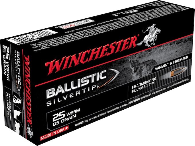 Winchester Varmint 25 Winchester Super Short Magnum (WSSM) Ammo 85 Grain Winchester Ballistic Silvertip Polymer Tip Box of 500